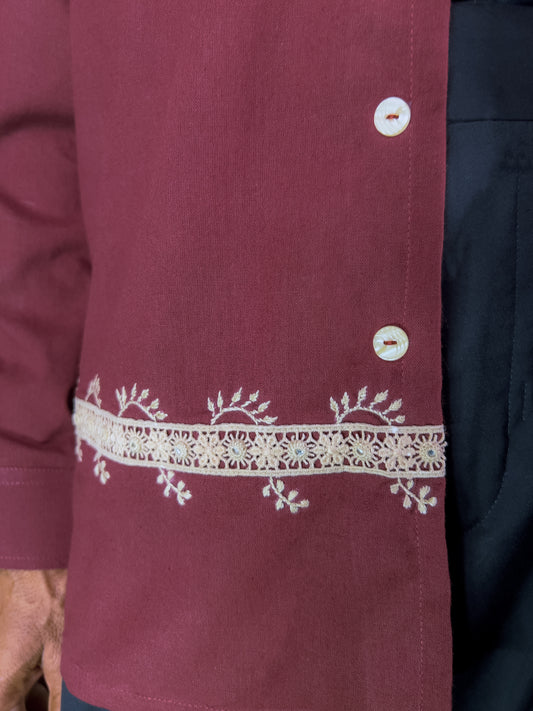 Bindu Hand Embroidered Boxy Cropped Shirt