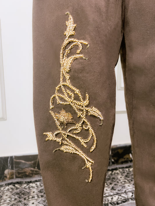 Step into SS’25 with a modern fusion of Western tailoring and Eastern craftsmanship. This collection features clean silhouettes, neutral tones, and subtle hand-embellishments, crafted from handmade and premium hand made fabrics.