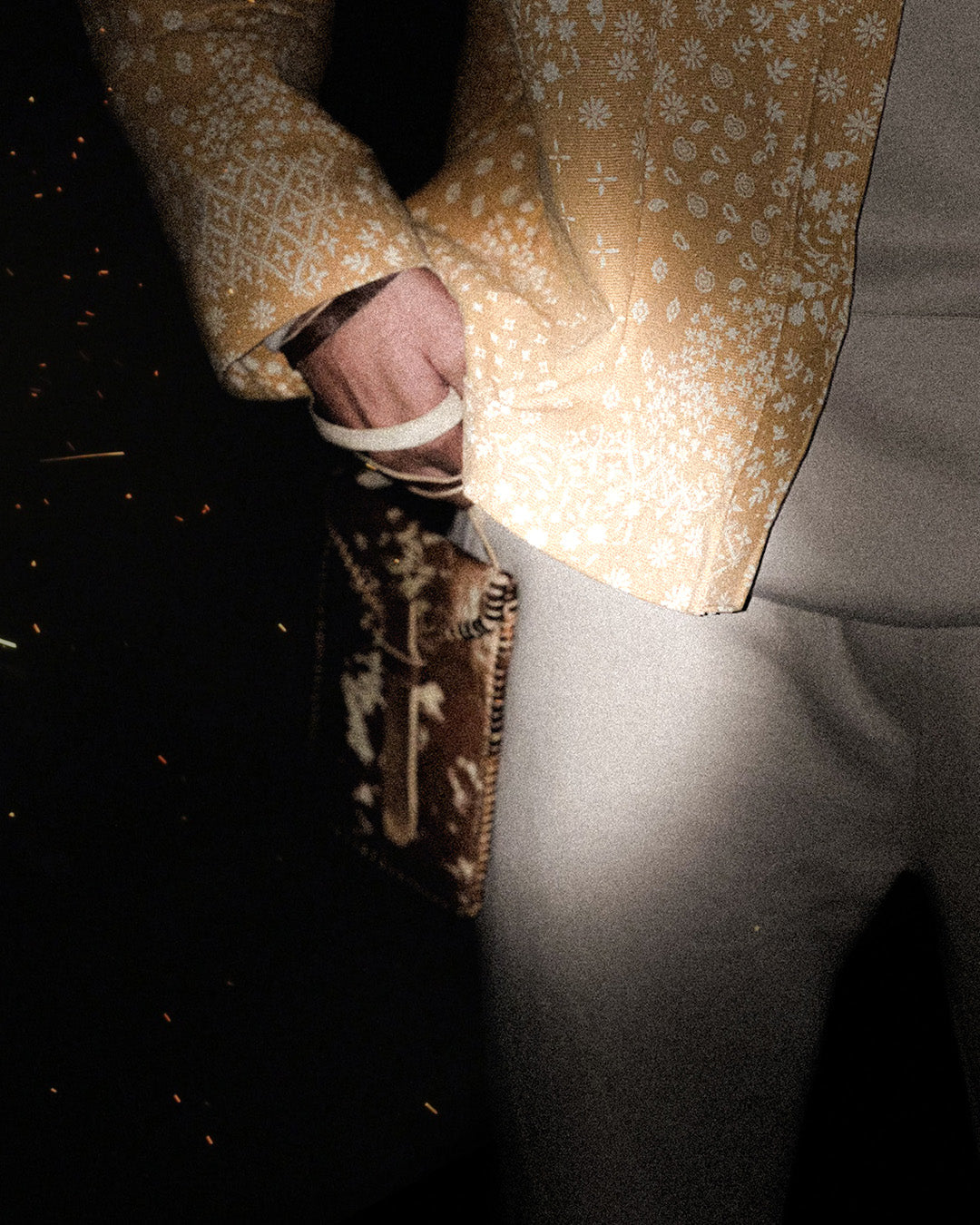 Crafted from premium quality canvas, the Arabesque Jacket not only exudes opulence but also ensures exceptional comfort.