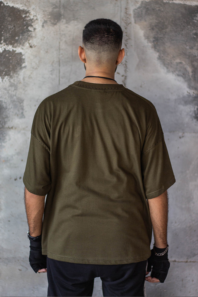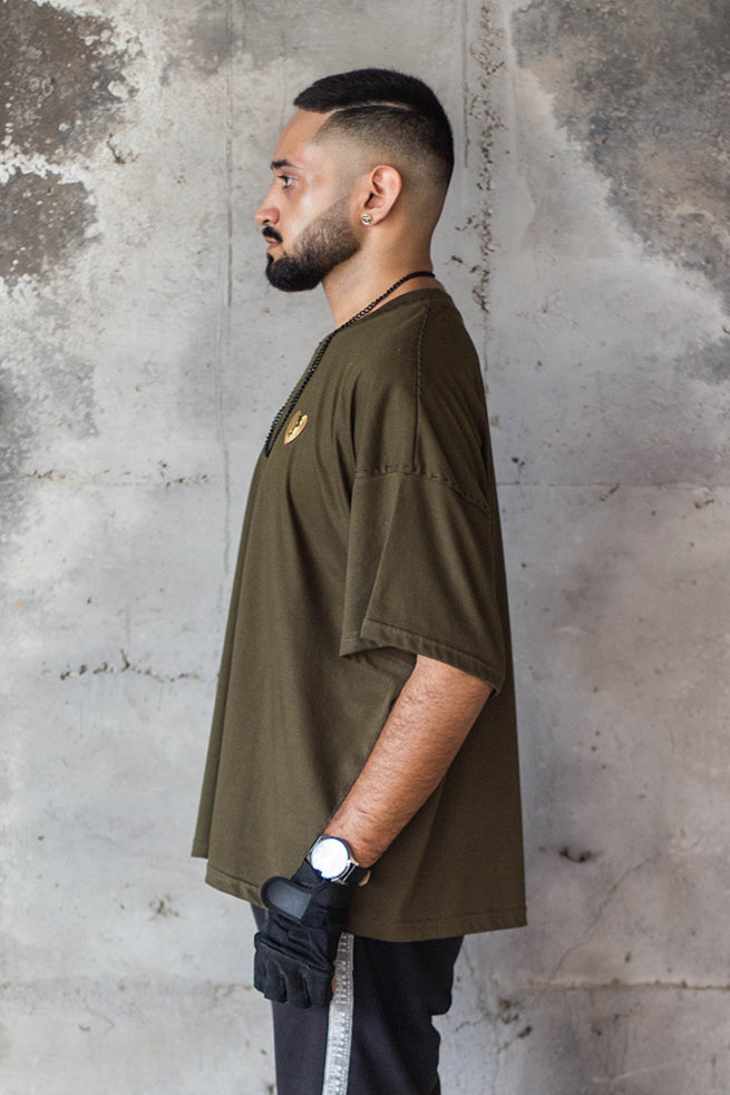 Big sad t-shirt is a uni-sex, oversized piece from our limited-piece summer vol-II collection "Ephemeral Hearts" made in collaboration with zrgr.co . This half-sleeved t-shirt features a copper heart jewel art piece, hand-stitched onto the t- shirt. With a running stitch all over - inspired by the Japanese concept of wabi sabi.
