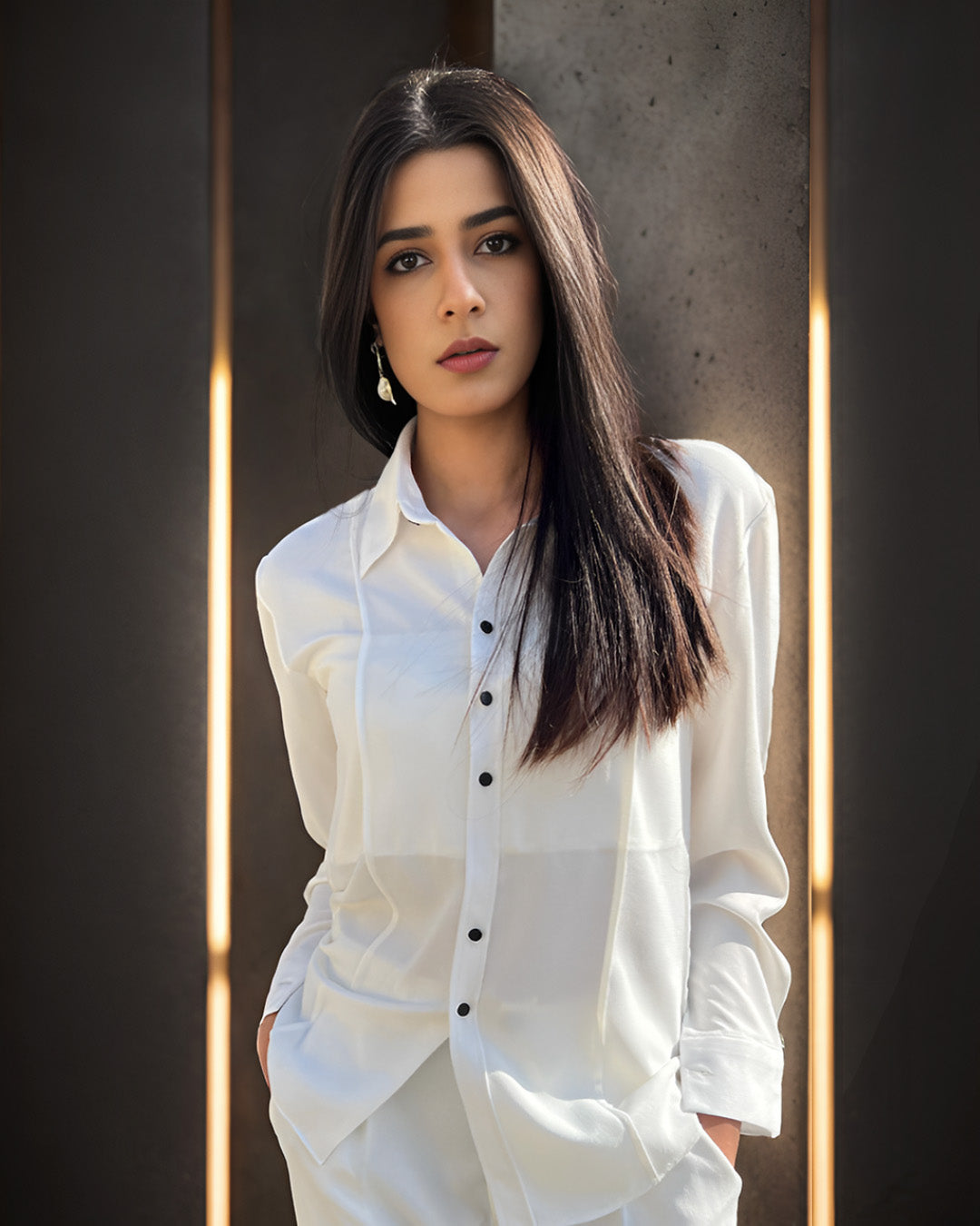 - Regular fitted cord set made of Korean georgette.