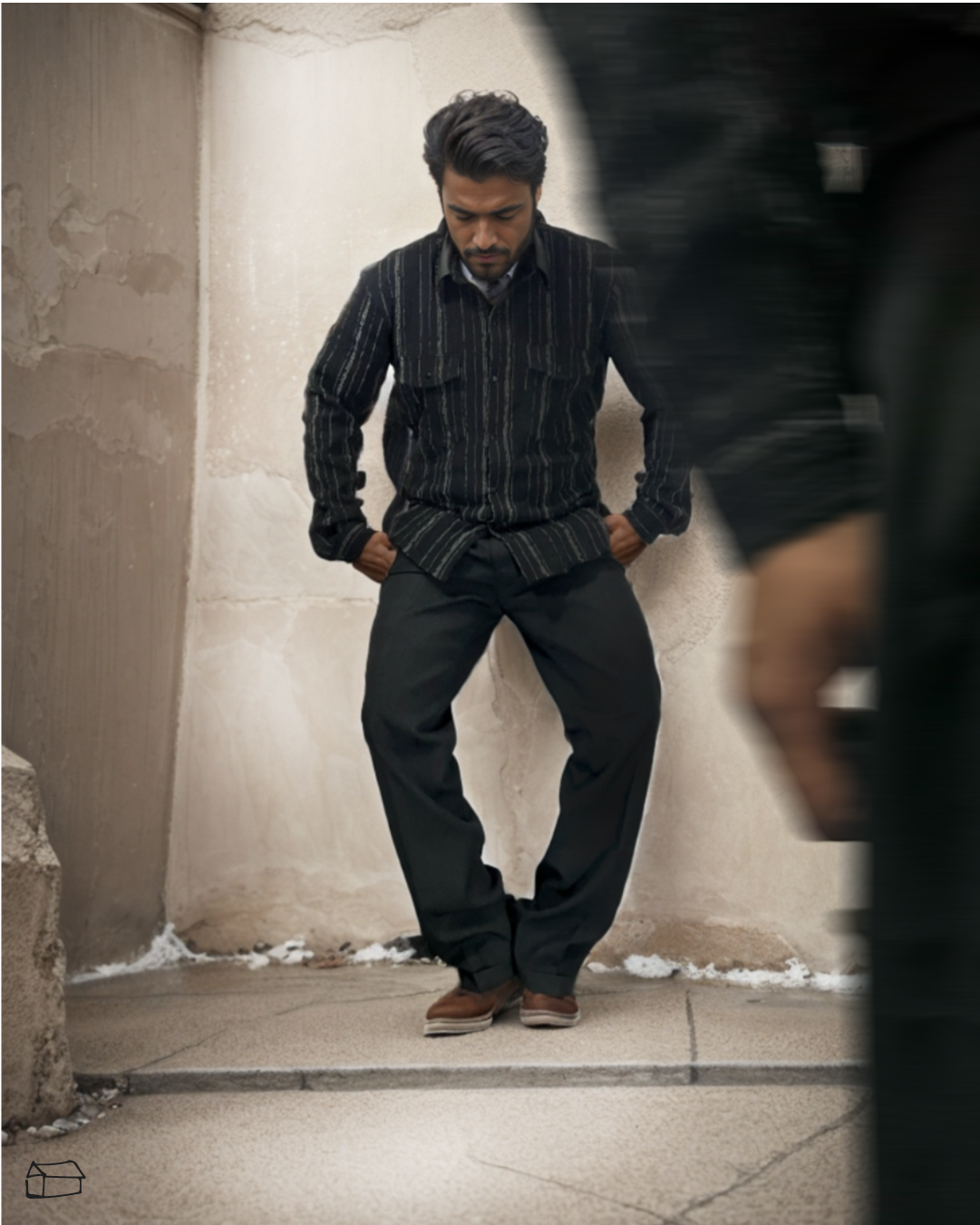 Luxuriate in the embrace of premium stretchable fabric, ensuring unparalleled comfort without compromising on style. The self-textured black canvas, adorned with sleek grey stripes, offers a bold statement, embodying refined elegance.