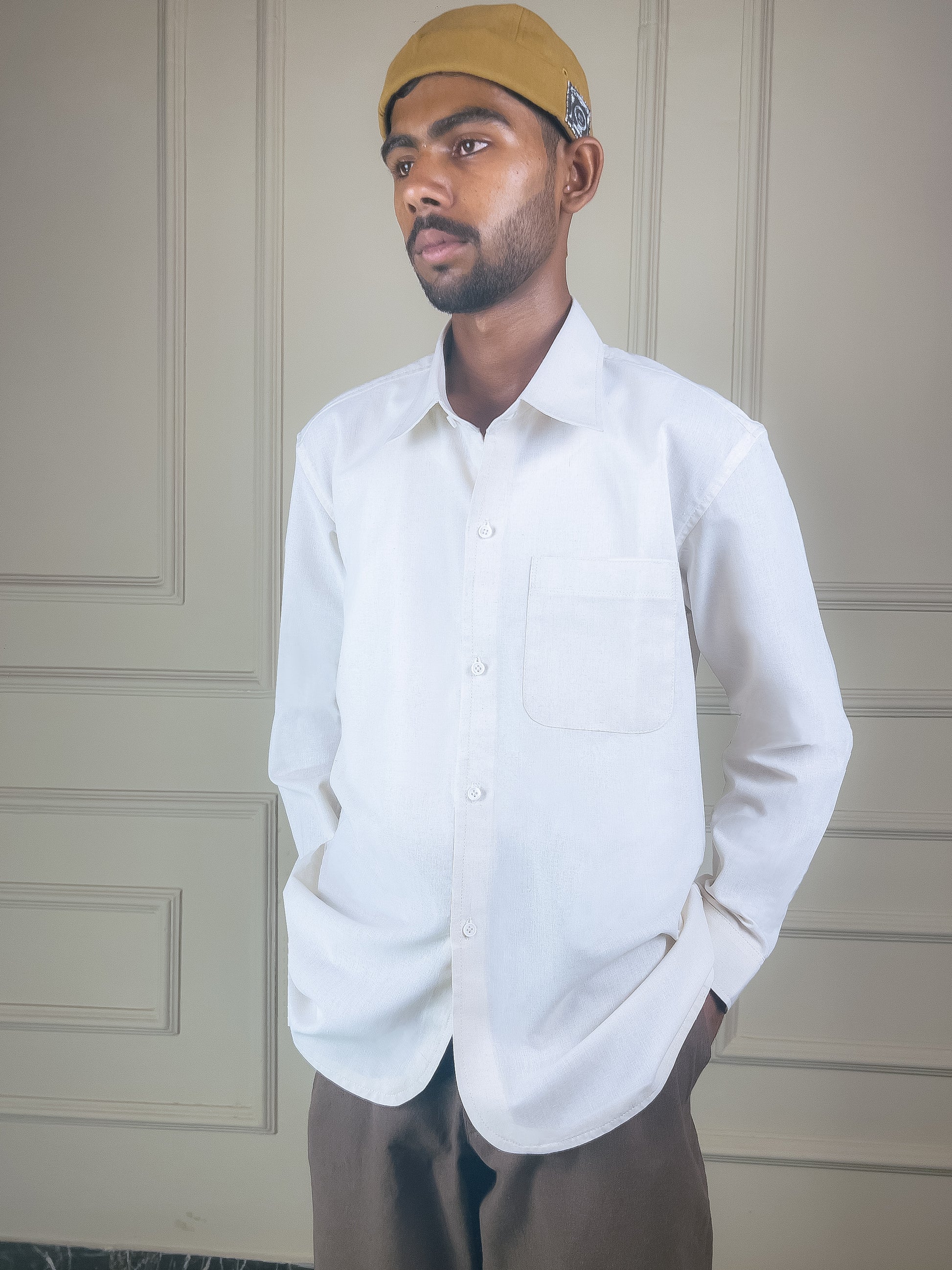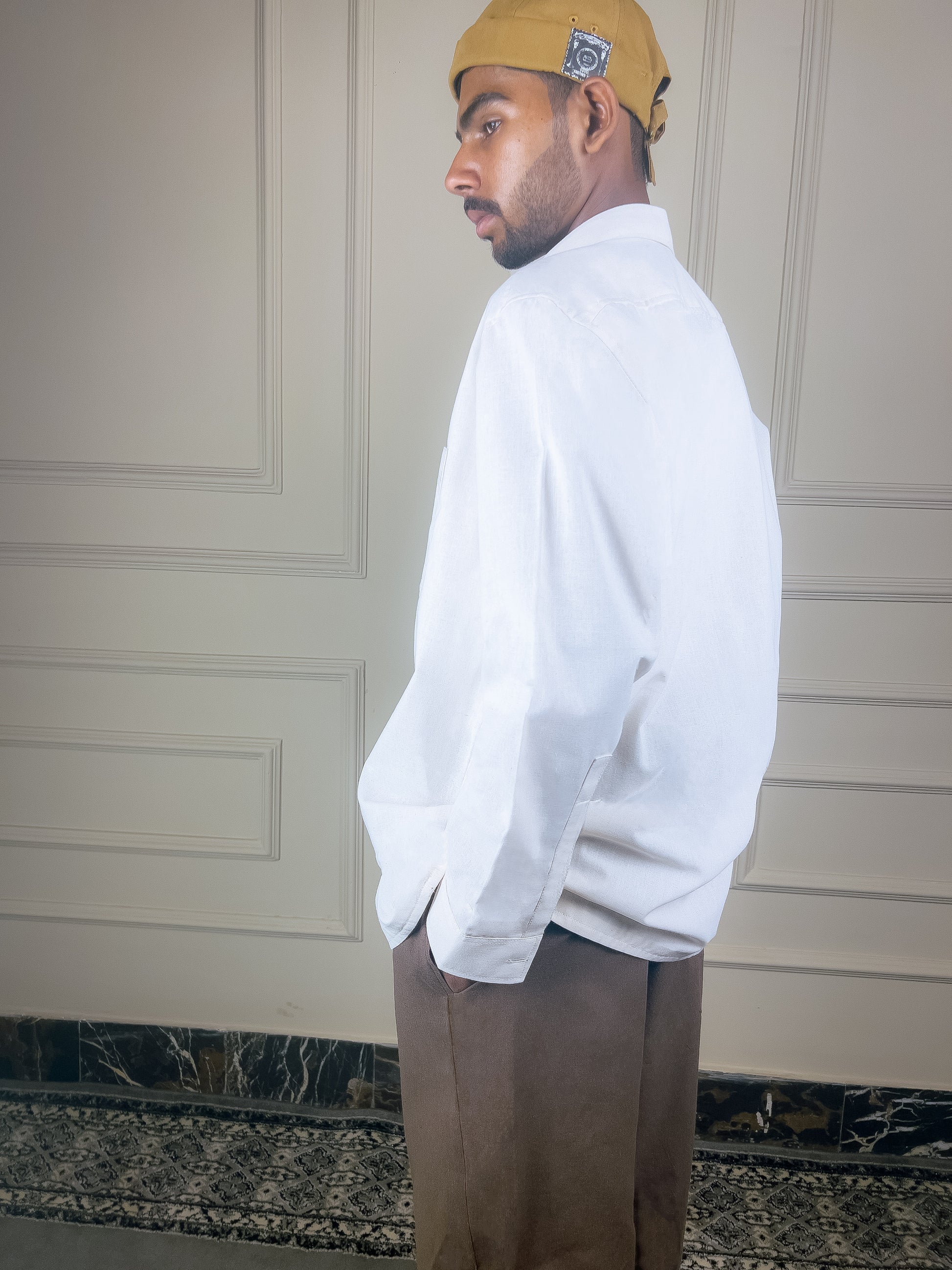 The Lehar Classic Shirt is a clean essential reimagined through hand-woven texture and a sculpted hemline. Designed for everyday ease with a touch of artisanal depth, it moves effortlessly between smart and casual settings.
