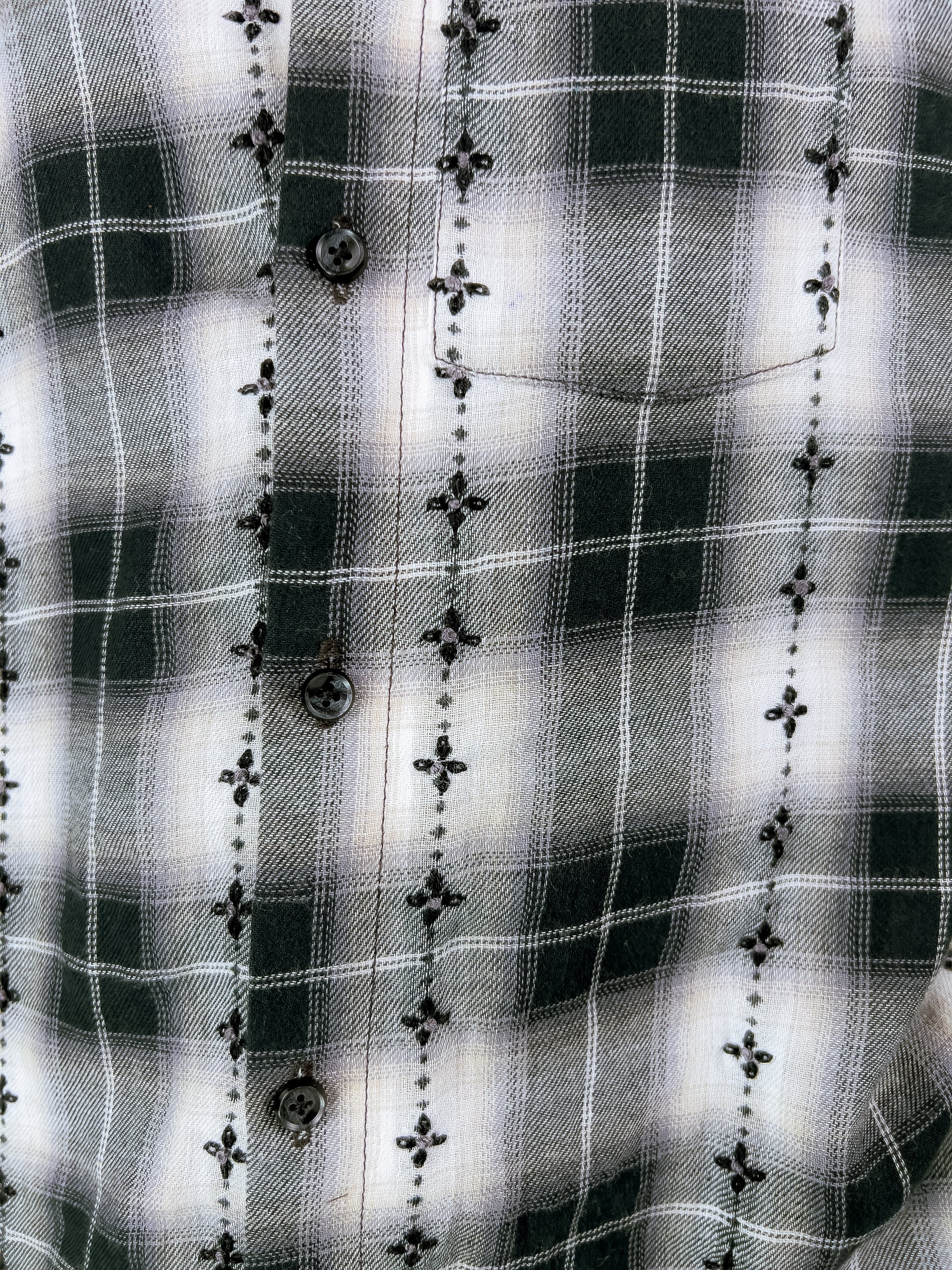 - Front button placket.