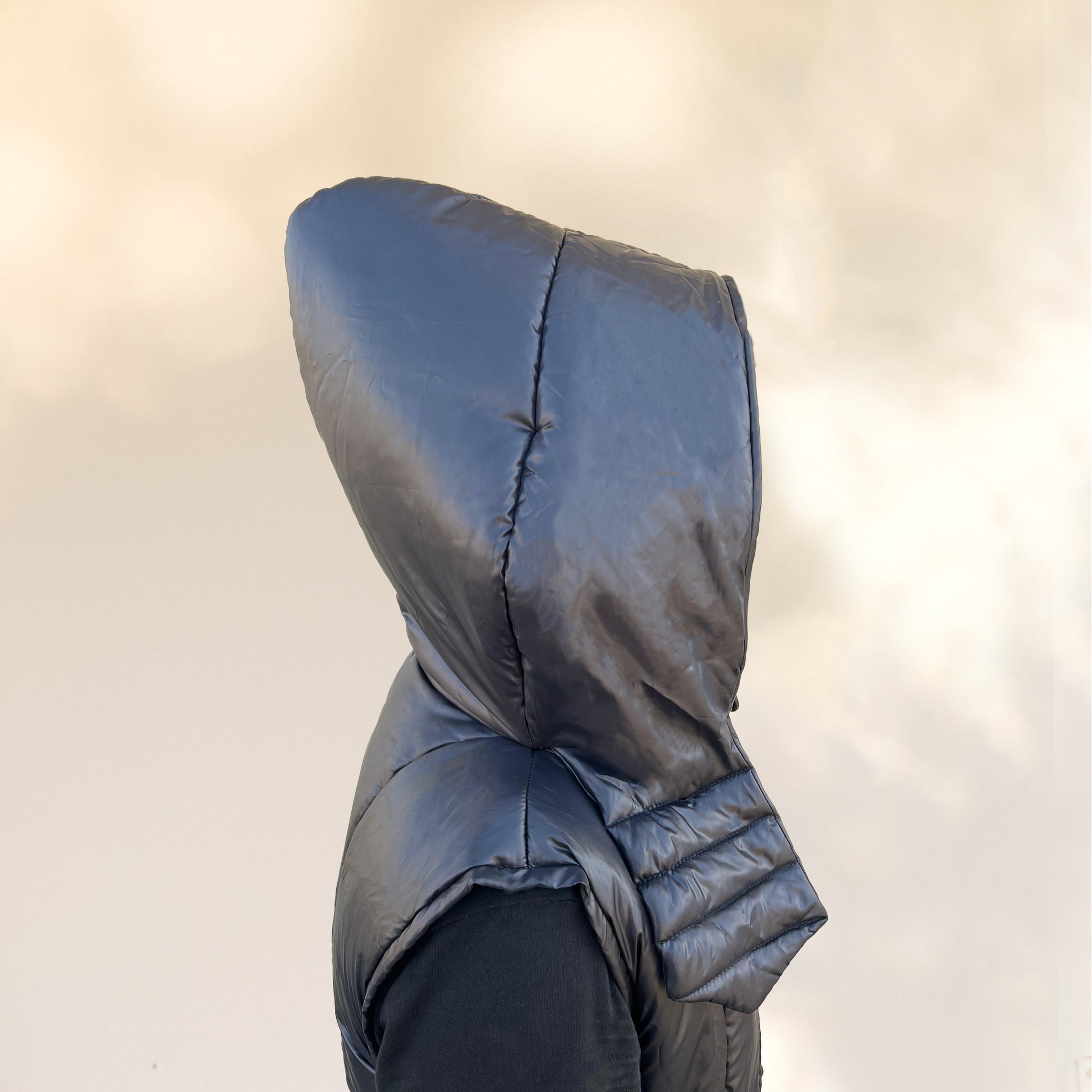 The Vanguard Quilted Jacket defies traditional jacket silhouettes with its unique paneled pattern and exaggerated hood shape. Its innovative design offers a fresh take on outerwear, perfect for making a statement in any setting.