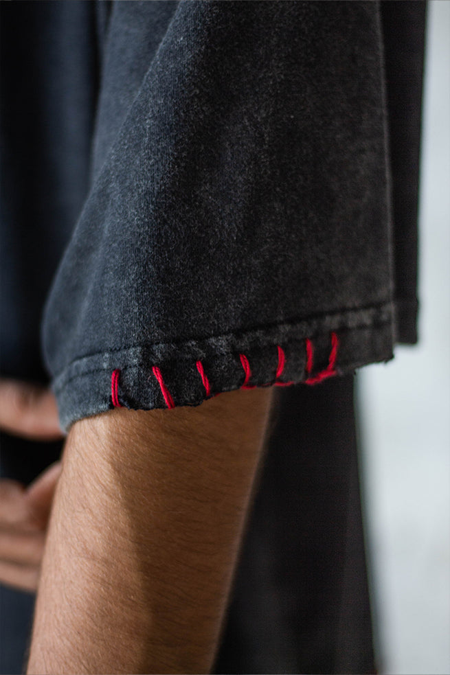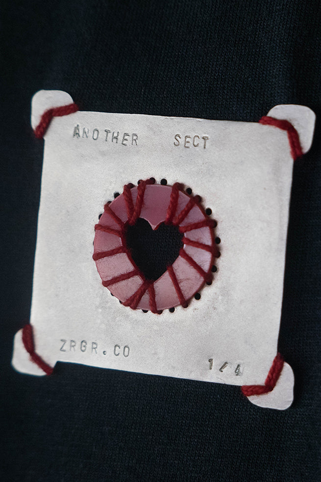 The x 4 t-shirt is a premium Cotton t-shirt with not only an acid-washed effect but also over sized fit and drop shoulder detail. Half sleeves and a silver plated patch with the acrylic heart cut made in collaboration with zrgr.co are hand stitched on the t-shirt.