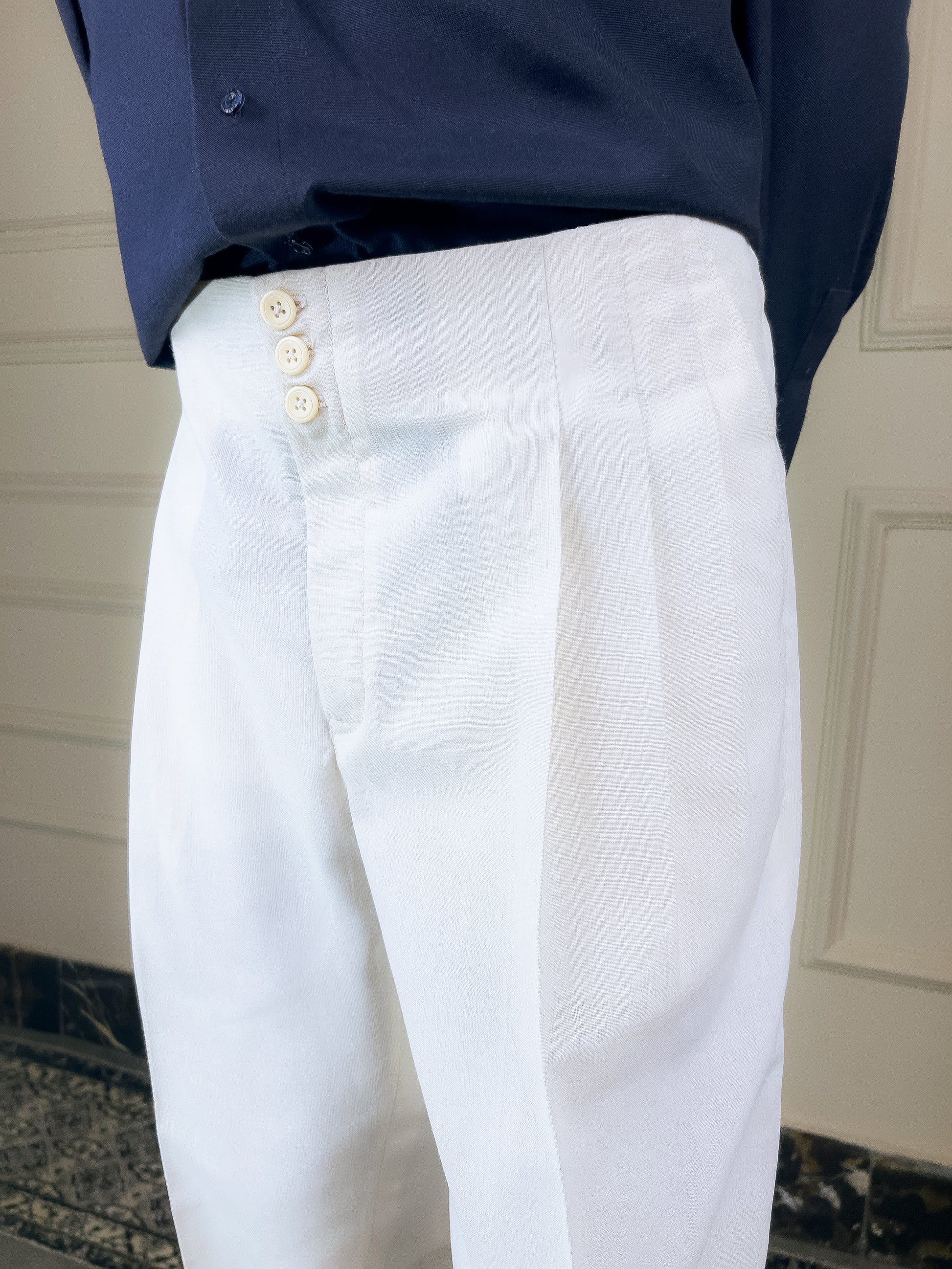 The Shwet High-Rise Pleated Pants offer a sculpted silhouette with architectural front pleats and a crisp high-rise waist. Minimal yet expressive, they channel refined tailoring with a nod to vintage-inspired formality.